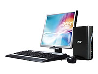 | Tecnología de plataforma | Intel vPro Technology | Tipo | Ordenador personal | Factor de forma del producto | Diseño ultrapequeño | Anchura | 25 cm | Profundidad | 20 cm | Altura | 6 cm | Localización | España | | Tipo | Intel Core 2 Duo E6300 / 1.86 GHz | Tecnología multipolar | Dual-Core | Computación de 64 bits | Sí | Cantidad instalada | 1 | Cantidad máxima soportada | 1 | | Tipo | L2 | Tamaño instalado | 2 MB | Caché por procesador | 2 MB | | Tipo conjunto de chips | Intel Q965 Express | Velocidad bus de datos | 1066 MHz | | Tamaño instalado | 1 GB / 2 GB (máx.) | Tecnología | DDR II SDRAM | Velocidad de memoria | 533 MHz | Controlador de almacenamiento | | | Tipo | 1 x Serial ATA - integrado | N° canales | 2 | | Disco duro | 1 x 160 GB - estándar - Serial ATA-150 | | Tipo | DVD±RW / DVD-RAM | | Tipo de monitor | Ninguno | | Tipo | Integrado | Procesador gráfico/ fabricante | Intel GMA 3000 | Memoria de vídeo | Dynamic Video Memory Technology 4.0 | | Tipo | Tarjeta de sonido - integrado | Modo de salida del sonido | Sonido envolvente de 7.1 canales | Cumplimiento de normas | High Definition Audio | | Tipo | Teclado | | Interfaz | USB | | Conexión de redes | Adaptador de red - integrado | Controladora(s) Ethernet | Intel PRO/1000 PM | Protocolo de interconexión de datos | Ethernet, Fast Ethernet, Gigabit Ethernet | | Total ranuras de expansión (libres) | 2 memoria ¦ 1 ( 0 ) x procesador ¦ 1 ( 1 ) x mini PCI | Interfaces | 8 x Hi-Speed USB - 4 PIN USB tipo A ( 4 frontales ) ¦ 1 x pantalla / vídeo - VGA - HD D-Sub de 15 espigas (HD-15) ¦ 1 x red - Ethernet 10Base-T/100Base-TX/1000Base-T - RJ-45 ¦ 1 x pantalla / vídeo - salida - DVI ¦ 1 x audio - entrada de línea - miniteléfono 3.5 mm ¦ 1 x audio - salida de línea - miniteléfono 3.5 mm ¦ 1 x micrófono - entrada - miniteléfono 3.5 mm ( 1 frontal ) ¦ 6 x audio | | Características | Ranura de bloqueo de seguridad (bloqueo de cable de venta por separado), wake on LAN | Cumplimiento de normas | CE, C-Tick, BSMI, EPA Energy Star, NEMKO, CB, CCC, FCC, ETL | | Tipo de dispositivo | Adaptador de corriente | Potencia suministrada | 135 vatios | Sistemas operativos / Software | | | OS prorporcionado | Microsoft Windows Vista Business | Software | Norton Antivirus, Cyberlink PowerDVD , NTI CD-Maker Gold Edition, Adobe Reader, Acer Empowering Technology | | Servicio y mantenimiento | 1 año de garantía | Detalles de Servicio y Mantenimiento | Garantía limitada - 1 año - introducir | | | |