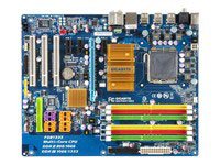 | Tipo de producto | Placa base | Factor de forma | ATX | Anchura | 30.5 cm | Profundidad | 24.5 cm | Procesadores compatibles | Pentium Extreme Edition, Pentium D, Core 2 Duo, Core 2 Extreme, Core 2 Quad, Pentium Dual Core, Celeron 400 sequence | Compatibilidad con procesadores de 64 bits | Sí | Socket del procesador | LGA775 Socket | Soporte multipolar | Dual-Core / Quad-core | Tipo conjunto de chips | Intel P35 Express / Intel ICH9 | Velocidad máxima del bus | 1333 MHz | Tipo BIOS | Award | Controlador de almacenamiento | ATA-133, Serial ATA-300 | Conectores de alimentación | Conector ATX12V de 4 espigas, conector de alimentación principal de 24 espigas | | Cantidad instalada (máximo soportado) | 0 ( 1 ) | | Tecnología de RAM admitida | DDR II SDRAM, DDR3 SDRAM | RAM instalada (máx.) | 0 MB / 8 GB (máx.) | Velocidad de la memoria RAM soportada | PC2-6400, PC2-5300, PC3-6400, PC3-8500, PC2-8500, PC3-10666 | RAM soportada | PC2-5300 8 GB ¦ PC2-6400 8 GB ¦ PC2-8500 8 GB ¦ PC3-6400 4 GB ¦ PC3-8500 4 GB ¦ PC3-10666 4 GB | Características de la RAM | Dos canales DDR | | Audio salida | Tarjeta de sonido | Códec de audio | Realtek ALC889A | Modo de salida del sonido | Sonido envolvente de 7.1 canales | Cumplimiento de normas | High Definition Audio | Telecom / Conexión de redes | | | Conexión de redes | Adaptador de red - Realtek RTL8111B - Ethernet, Fast Ethernet, Gigabit Ethernet | | Características del BIOS | Soporte para DMI 2.0, soporte ACPI 1.0b, soporte de SMBIOS 2.3, Tecnología Hyper-Threading | Monitorización de hardware | Temperatura interna de CPU, temperatura del chasis, tacómetro de ventilador de CPU, tacómetro de la caja del ventilador, voltaje del sistema, protección contra sobrecalentamiento de la CPU, tacómetro de ventilador de la fuente de alimentación | Características de hardware | Detección de intrusión en el chasis, Q-Flash, C.O.M. (Corporate Online Management), Ultra Durable 2 | | Ranura(s) de expansión | 1 procesador - LGA775 Socket ¦ 4 memoria ( 1.8 V ) - DIMM de 240 espigas ¦ 2 memoria ( 1.5 V ) - DIMM de 240 espigas ¦ 1 PCI Express x16 ¦ 3 PCI Express x1 ¦ 3 PCI | Interfaces de almacenamiento | Intel ICH9 : Serial ATA-300 - conector(es): 6 x serial ATA de 7 espigas - 6 dispositivo/os ¦ ATA-133 - conector(es): 1 conector IDC de 40 espigas - 2 dispositivo/os ¦ Serial ATA-300 - conector(es): 2 x 7pin Serial ATA - 2 dispositivo/os | Interfaces | 1 x audio - entrada de línea - 4 PIN MPC ¦ 1 x almacenamiento - interfaz de unidad de disquetes - 34 PIN IDC ¦ 1 x teclado - genérico - mini-DIN de 6 espigas (estilo PS/2) ¦ 1 x ratón - genérico - mini-DIN de 6 espigas (estilo PS/2) ¦ 1 x audio - salida de SPDIF - RCA ¦ 1 x audio - salida de SPDIF - TOSLINK ¦ 8 x Hi-Speed USB - 4 PIN USB tipo A ¦ 1 x red - Ethernet 10Base-T/100Base-TX/1000Base-T - RJ-45 ¦ 1 x audio - salida de línea - mini-conexión telefónica estéreo 3,5 mm ¦ 1 x micrófono - entrada - miniteléfono 3.5 mm ¦ 1 x audio - entrada de línea - mini-conexión telefónica estéreo 3,5 mm ¦ 1 x audio - salida de línea (surround lateral) - mini-conexión telefónica estéreo 3,5 mm ¦ 1 x audio - salida de línea (posterior) - mini-conexión telefónica estéreo 3,5 mm ¦ 1 x audio - salida de línea (central/subwoofer) - miniteléfono 3.5 mm | Conectores adicionales (opcional) | 4 x Hi-Speed USB | | Cables incluidos | 1 x cable IDE ¦ 1 x cable de disquete ¦ 2 x cable de serie ATA ¦ 1 x cable interno a externo de serie ATA | Software incluido | Controladores y utilidades, Norton Internet Security, @BIOS, Xpress Recovery 2 | Windows Vista | Certified for Windows Vista | Cumplimiento de normas | RoHS | | | |
