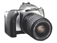 | Tipo de cámara | Cámara SLR | Anchura | 13 cm | Profundidad | 6.4 cm | Altura | 8.8 cm | Peso | 340 g | | Formato de cámara | 35mm | Margen de exposición | 1/2000 seg - 30 seg | Modos de exposición | Programa, flash programable TTL, flash programable con la función de medición A-TTL, flash programable con la función de medición E-TTL, profundidad de campo, lámpara, automático, manual, prioridad de abertura, prioridad de velocidad | Medición de la exposición | De evaluación, parcial (9.5%), compensado en el centro | Detalles del rango de exposición | EV 1-20 ( ISO 100 ) | Compensación de exposición | ±2 rango de EV, en pasos EV de 1/2 | Zonas de medición de la exposición | 35 | Exposición múltiple | 9 exposiciones por cuadro | Velocidad de sincronización X | 1/90 de segundo | Control de obturación | Electrónico | Modos de toma de fotografías | Completamente automático, acercamiento del primer plano, zoom para retrato, night portrait, horizontal, deportes | Foco automático | TTL phase detection | Modos del foco automático | Toma individual, automático, continuo | Puntos (zonas) de foco automático | 7 | Rango de funcionamiento del foco automático | EV 1-18 | Gama de velocidades de la película | ISO 6 - 6400 | Avance de la película | Automático | Velocidad continua del disparador | 1.5 cuadros por segundo | Funciones del temporizador | Temporizador automático | Demora del temporizador automático | 10 seg | Información de la pantalla de cristal líquido | Modo de enfoque automático, velocidad de obturación, contador de cuadros, apertura, reducción del efecto de ojos rojos, modo de temporizador automático, velocidad de la película, accionamiento continuo, compensación de exposición, Modo de medición, estado de la pila, programa, modo del flash | Presencia del sistema de lentes | Opcional (cuerpo solamente)cuerpo solamente | Características | Bloqueo de foco automático, bloqueo de exposición automática | Terminal de flash | Zapata caliente | Montura de la lente | Canon EF | | Tipo | Pentaprisma espejo al nivel del ojo | Pantallas de visor | Cuadro de foco automático | Información que aparece en la pantalla de cristal líquido | Velocidad del disparador, compensación de la exposición, FA en foco, finalización de la carga del flash, reducción del efecto de ojos rojos, apertura | Pantalla de enfoque | Mate láser | | Flash de cámara | Flash emergente | Modos de flash | Modo suplente, modo automático, modo de flash apagado, reducción del efecto de ojos rojos | Reducción de ojos rojos | Sí | Número de guía (m / ISO 100) | 12 | Distancia de toma de fotografías | 1 m - 4.2 m : ISO 100 | Cobertura de la lente | 28mm | Características | Iluminador de AF | Consumo eléctrico | Tiempo de reciclaje - 2 seg | | Accesorios incluidos | Correa, tapa del cuerpo | | Tipo | Batería - CR2 | Tecnología | Litio | Cantidad necesaria | 2 | | | |