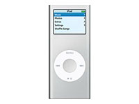 | Apple iPod nano (MA477ZK/A) | |  | |  | Descripción Coge todo lo que adoras del iPod y comprímelo. Y ahora comprímelo otra vez. El iPod nano es una maravilla del grosor de un lápiz que cuenta con pantalla a todo color, hasta 14 horas de autonomía y capacidad enorme para almacenar y reproducir canciones, audiolibros y podcasts sin un solo salto.Cuando pienses en el iPod nano, tendrás que replantearte tu definición de "pequeño". Pesa menos que el cambio que llevas en el bolsillo. También puedes colgártelo del cuello y olvidarte de que lo llevas. ¿Que quieres llevártelo a correr? No problem. Disfrutarás de tu música sin un solo salto.Gracias a su pantalla brillante en color, el iPod nano hace que tu música se vea tan bien como se oye. Ve las portadas de los álbumes mientras escuchas las canciones. Examina tus fotos preferidas. O bien navega por brillantes menús de fácil lectura. | Características técnicas | | Referencia | Apple iPod nano - Reproductor digital - flash 2 GB - AAC, MP3 - pantalla 1.5" - plata | Descripción del producto | Apple iPod nano reproductor digital | Tipo de producto | Reproductor digital - basado en flash | Color incluido | Plata | Dimensiones (Ancho x Profundidad x Altura) | 4.1 cm x 0.7 cm x 8.9 cm | Peso | 40 g | Modo de salida del sonido | Estéreo | Normas de audio digital admitidas | WAV, AAC, AIFF, Audible, MP3, Apple Lossless | Reproducción de fotografía digital | Sí | Pantalla incorporada | Color - 176 x 132 - 1.5" - LCD | Reloj incorporado | Reloj digital, temporizador, despertador | Memoria Flash | 2 GB | Auriculares | Auriculares - biauricular - botón para el oído - estéreo | Interfaz admitida por el PC | USB | Batería | Reproductor - recargable - Ion de litio | Garantía del fabricante | 1 año de garantía | |