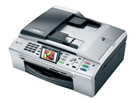 | Tipo de dispositivo | Fax / copiadora / impresora / escáner | Tipo de copiadora | Digital | Tipo de fax | Papel normal | Tecnología de impresión | Chorro de tinta - color | Tamaño diagonal de la pantalla | 2" | Funciones de máquina de oficina | Impresión desde tarjeta de memoria | Anchura | 39.8 cm | Profundidad | 37 cm | Altura | 18 cm | Peso | 8.2 kg | | Memoria estándar | 32 MB | Memoria flash soportada | Memory Stick, CompactFlash, SD Memory Card, MultiMediaCard, xD-Picture Card, Memory Stick PRO | | Velocidad de copia máxima | Hasta 18 ppm (mono) / hasta 16 ppm (color) | Resolución máxima de copia | Hasta 1200 x 1200 ppp (mono) / hasta 1200 x 600 ppp (color) | Ampliación máxima del documento | 400% | Reducción máxima del documento | 25% | Nº máximo de copias | 99 | | Resolución máxima de impresión | Hasta 6.000 x 1.200 ppp (mono) / hasta 6.000 x 1.200 ppp (color) | Velocidad máxima de impresión | Hasta 25 ppm (mono) / hasta 20 ppm (color) | Configuración de cartuchos de tinta | 4 cartuchos (1 de cada: cian, magenta, amarillo, negro) | Paleta de tinta admitida (colores) | Cian, magenta, amarillo, negro | Color | 4 tintas | Tamaño mínimo de gota de tinta | 1.5 pl | | Elemento de escaneado | CIS | Resolución óptica | 600 x 2400 ppp | Resolución interpolada | 19.200 x 19.200 ppp | Profundidad de escala de grises | 8 bit | Profundidad de color | 24 bit | Profundidad de color (interna) | 36 bit | | Compatibilidad | G3 | Velocidad máxima de transmisión | 14.4 Kbps | Sistema de compresión de datos | MH, MR, MMR, JPEG | Capacidad total de memoria | Hasta 400 páginas | Fax desde PC | Sí | Características del aparato de fax | | | Modo de corrección de errores (ECM) | Sí | Marcado rápido | 80 estación(es) | Transmisión de radiodifusión | 210 estaciones | Transmisión con retraso | 50 estaciones | Características | Envío de fax en memoria, remarcación automática | Tratamiento de documentos y medios | | | Tamaño mínimo del original | 148 x 148 mm | Tamaño máximo del original | Legal (216 x 356 mm) | Tipo de original | Hojas | Capacidad del alimentador de documentos | 10 hojas | Tamaño máximo de la copia | Legal (216 x 356 mm) | Peso mínimo de la copia | 64 g/m2 | Peso máximo de la copia | 240 g/m2 | Tipo de papel admitido | Transparencias, papel normal, papel reciclado | Capacidad estándar de papel | 100 hojas | Capacidad de las bandejas de salida | 50 hojas | Detalles de tratamiento de documentos y medios | ADF - 10 hojas tamaño: 148 x 148 mm - Legal (216 x 356 mm) ¦ Bandeja de entrada - 100 hojas ¦ Bandeja de salida - 50 hojas | Detalles de velocidad | Impresión : hasta 25 ppm - B/W ¦ Impresión : hasta 20 ppm - color ¦ Copia : hasta 18 ppm - B/W ¦ Copia : hasta 16 ppm - color | | Disponibilidad de la conexión del PC | Sí | Conexión PC | USB, Ethernet 10 Base-T/100 Base-TX | Protocolos de red | TCP/IP | Soporte del sistema operativo | MS Windows XP, MS Windows 2000, MS Windows ME, MS Windows 98, MS Windows 98 SE, Apple MacOS X 10.2.4 ó posterior, MS Windows XP Professional x64 Edition | Software incluido | Presto! PageManager, ScanSoft PaperPort SE, SYSTRAN WebTranslator 5.0, Brother Multifunction Link Pro 2.0 | | Especificaciones de impresión directa | PictBridge, DPOF | | Servicio y mantenimiento | 2 años de garantía | Detalles de Servicio y Mantenimiento | Garantía limitada - 2 años | | Temperatura mínima de funcionamiento | 10 °C | Temperatura máxima de funcionamiento | 35 °C | Ámbito de humedad de funcionamiento | 20 - 80% | | | |