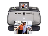 | Tipo de impresora | Impresora de fotos compacta - chorro de tinta - color | Anchura | 25.2 cm | Profundidad | 11.6 cm | Altura | 12.9 cm | Peso | 1.6 kg | Localización | Español / España | | Tecnología de inyección de tinta | HP Thermal Inkjet | Dispositivos incorporados | Pantalla de vista previa | Tamaño de pantalla de vista previa | 2.4" | Tecnología de conectividad | Cableado | Interfaz | USB | Resolución máxima (B/N) | 1200 ppp x 1200 ppp | Resolución máxima (color) | 4800 ppp x 1200 ppp | Especificaciones de impresión directa | PictBridge | | RAM instalada (máx.) | 64 MB | | Tipo | Lector de tarjetas | Tarjetas de memoria flash compatibles | Palanca de memoria, MultiMediaCard, SD Memory Card, Memory Stick Duo, xD-Picture Card, CompactFlash Card | | Tipo de soporte | Papel fotográfico brillante , fichas | Tamaño soporte | 100 x 150 mm, 130 x 180 mm | Tamaños de foto sin bordes | 130 x 180 mm | Peso del soporte | 280 g/m2 | Capacidad total del material | 20 hojas | | Conexiones | 1 x USB - 4 PIN USB tipo B ¦ 1 x puerto de impresión directa - USB - 4 PIN USB tipo A | | Dispositivo de alimentación | Adaptador de corriente - externa | Voltaje necesario | CA 120/230 V | Frecuencia requerida | 50/60 Hz | Consumo eléctrico en funcionamiento | 14 vatios | Consumo eléctrico en modo de espera / reposo | 3 vatios | Software / Requisitos del sistema | | | Software incluido | HP Photosmart Premier, HP Photosmart Essential | Sistema operativo requerido | Microsoft Windows 2000, Microsoft Windows Millennium Edition, Microsoft Windows XP Home Edition, Microsoft Windows XP Professional, Microsoft Windows XP Professional x64 Edition, Apple MacOS X 10.3.9 ó posterior | Detalles de los requisitos del sistema | Windows 98SE/2000/ME/XP - Pentium II - RAM 64 MB - HD 200 MB ¦ MacOS - PowerPC G3 - RAM 128 MB - HD 400 MB | | Servicio y mantenimiento | 1 año de garantía | Detalles de Servicio y Mantenimiento | Garantía limitada - piezas y mano de obra - 1 año | | Temperatura mínima de funcionamiento | 0 °C | Temperatura máxima de funcionamiento | 45 °C | Ámbito de humedad de funcionamiento | 5 - 95% | Emisión de sonido | 55 dBA (operativo) | | | |