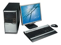 | Tipo | Ordenador personal | Factor de forma del producto | Mini torre | Anchura | 18.3 cm | Profundidad | 45.5 cm | Altura | 37 cm | Localización | España | | Tipo | Intel Pentium D 925 | Tecnología multipolar | Dual-Core | Computación de 64 bits | Sí | Cantidad instalada | 1 | Cantidad máxima soportada | 1 | | Tipo | L2 | | Tipo conjunto de chips | Intel 946GZ Express | | Tamaño instalado | 1 GB / 2 GB (máx.) | Tecnología | DDR II SDRAM | Factor de forma | DIMM de 240 espigas | Características | Dos canales DDR | Controlador de almacenamiento | | | Tipo | 1 x Serial ATA - integrado | Tipo de controlador interfaz | Serial ATA-300 | | Disco duro | 1 x 80 GB - estándar - Serial ATA-300 | | Tipo | DVD-RW | | Tipo de monitor | Ninguno | | Tipo | Integrado | Procesador gráfico/ fabricante | Intel GMA 3000 | Memoria de vídeo | Dynamic Video Memory Technology 4.0 | | Tipo | Tarjeta de sonido - integrado | Modo de salida del sonido | Sonido envolvente de 7.1 canales | Cumplimiento de normas | High Definition Audio | | Conexión de redes | Adaptador de red - integrado | Protocolo de interconexión de datos | Ethernet, Fast Ethernet, Gigabit Ethernet | | Total compartimentos de expansión (libres) | 2 ( 2 ) x accesible a la parte frontal - 3.5" x 1/3H ¦ 2 ( 1 ) x accesible a la parte frontal - 5.25" x 1/2H ¦ 4 ( 3 ) x interna - 3.5" x 1/3H | Total ranuras de expansión (libres) | 2 memoria - DIMM de 240 espigas ¦ 1 ( 0 ) x procesador ¦ 2 ( 2 ) x PCI ¦ 1 ( 1 ) x PCI Express x16 ¦ 1 ( 1 ) x PCI Express x1 | Interfaces | 1 x auriculares - mini-conexión telefónica estéreo 3,5 mm ¦ 1 x micrófono - miniteléfono 3.5 mm ¦ 8 x Hi-Speed USB - 4 PIN USB tipo A ( 4 frontales ) ¦ 1 x teclado - genérico - mini-DIN de 6 espigas (estilo PS/2) ¦ 1 x ratón - genérico - mini-DIN de 6 espigas (estilo PS/2) ¦ 1 x red - Ethernet 10Base-T/100Base-TX/1000Base-T - RJ-45 ¦ 1 x paralelo - IEEE 1284 (EPP/ECP) - D-Sub de 25 espigas (DB-25) ¦ 1 x serial - RS-232 - D-Sub de 9 espigas (DB-9) ¦ 1 x pantalla / vídeo - VGA - HD D-Sub de 15 espigas (HD-15) | | Cumplimiento de normas | CE, C-Tick, BSMI, EPA Energy Star, NEMKO, CB, CCC, FCC, ETL | | Tipo de dispositivo | Fuente de alimentación | Potencia suministrada | 250 vatios | Sistemas operativos / Software | | | OS prorporcionado | Microsoft Windows XP Professional | Software | Cyberlink PowerDVD , NTI CD-Maker Gold Edition, Adobe Reader 7.0, Acer Empowering Technology, Norton Antivirus 2006 | | | |