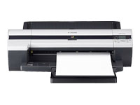 | Tipo de impresora | 24" impresora de gran formato - chorro de tinta - color | Anchura | 99.7 cm | Profundidad | 81 cm | Altura | 34.4 cm | Peso | 51 kg | | Tamaño mínimo de gota de tinta | 4 pl | Configuración de cartuchos de tinta | 5 depósitos de tinta individuales | Dispositivos incorporados | Indicador LED de estado | Tecnología de conectividad | Cableado | Interfaz | USB, Ethernet 10/100Base-TX | Resolución máxima (color) | 2400 ppp x 1200 ppp | Opciones de la impresora | Impresión a sangre | | RAM instalada (máx.) | 256 MB | | Tipo de soporte | Papel normal, papel satinado, papel cuché , papel cuché de gramaje extra , papel fotográfico semisatinado, papel de calcar, papel mate, papel de fotografía satinado, papel semibrillante extra grueso, papel fotográfico mate, papel de alta resolución, papel sintético autoadhesivo, papel sintético, papel fotográfico satinado de gramaje extra, papel de pruebas, película translúcida | Tamaño máximo de soporte (personalizado) | 610 mm | Tamaño soporte | A4 (210 x 297 mm), A3 (297 x 420 mm), A2 (420 x 594 mm), B4 (250 x 353 mm), B3 (353 x 500 mm), rollo 42 cm, rollo A3, Rollo (43,2 cm), rollo A1 (61.0 cm) | | Conexión de redes | Servidor de impresión | Tecnología de conectividad | Cableado | Protocolo de interconexión de datos | Ethernet, Fast Ethernet | Red / Protocolo de transporte | TCP/IP, IPX/SPX, AppleTalk | Protocolo de gestión remota | HTTP | Cumplimiento de normas | IEEE 802.3, IEEE 802.3u | | Conexiones | 1 x Hi-Speed USB - 4 PIN USB tipo B ¦ 1 x red - Ethernet 10Base-T/100Base-TX - RJ-45 | | Consumibles incluidos | 1 x depósito de tinta ( cián ) - 130 ml ¦ 1 x depósito de tinta ( magenta ) - 130 ml ¦ 1 x depósito de tinta ( amarillo ) - 130 ml ¦ 1 x depósito de tinta ( negro ) - 130 ml ¦ 1 x depósito de tinta ( negro mate ) - 130 ml | Cumplimiento de normas | Certificado FCC Clase B , CE, UL, TUV, GOST, EPA Energy Star, CB | | Dispositivo de alimentación | Fuente de alimentación - interna | Voltaje necesario | CA 120 V | Frecuencia requerida | 50/60 Hz | Consumo eléctrico en funcionamiento | 100 vatios | Consumo eléctrico en modo de espera / reposo | 6 vatios | Software / Requisitos del sistema | | | Sistema operativo requerido | Microsoft Windows 2000, Apple MacOS 9, Apple MacOS X, Microsoft Windows XP, Microsoft Windows Server 2003, Microsoft Windows Vista | | Temperatura mínima de funcionamiento | 15 °C | Temperatura máxima de funcionamiento | 30 °C | Ámbito de humedad de funcionamiento | 10 - 80% | Emisión de sonido | 35 dBA (inactivo) / 52 dBA (operativo) | | | |
