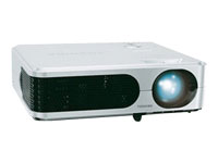 | Tipo de dispositivo | Proyector LCD | Dispositivos integrados | Altavoz | Anchura | 28.8 cm | Profundidad | 24.7 cm | Altura | 8.2 cm | Peso | 2.8 kg | | Brillo de imagen | 2200 ANSI lumens | Coeficiente de contraste de imagen | 600:1 | Tamaño de la imagen | 1 m - 7.62 m | Distancia de proyección | 1.3 m - 12 m | Resolución | 1280 x 800 (nativo) / 1600 x 1200 (cambiando las proporciones) | Relación de aspecto nativa | Pantalla ancha | Soporte color | 24 bits (16,7 millones de colores) | Velocidad sincronización máx. (V x H) | 150 Hz x 120 kHz | Tipo de lámpara | 205 vatios | Ciclo de vida útil lámpara | 2000 hora(s) / 3000 hora(s) (modo económico) | Controles/Ajustes | Corrección trapezoidal | Características | Tecnología Eco-Mode, circuito de corrección del color Natural Color Enhancer | Sistema de objetivo de proyector | | | Tipo de enfoque | Manual | Apertura de la lente | F/1.6-1.88 | Tipo de zoom | Manual | Factor de zoom | 1.2x | Tipo de corrección trapezoidal | Digital | Dirección de corrección trapezoidal | Vertical | Corrección Keystone Vertical | -30 / +30 | | Formato vídeo analógico | NTSC, SECAM, PAL | Señal vídeo analógica | RGB, S-Video, vídeo compuesto | Formatos de vídeo de televisión digital | 480p, 720p, 1080i, 480i, 576i, 576p | | Señal vídeo analógica | RGB | | Tipo | Altavoces - integrado | Modo de salida del sonido | Mono | Alimentación de salida / Canal | 1 vatios | Altavoz/altavoces | 1 x canal mixto | | Tipo | Mando a distancia - externo - inalámbrico | | Interfaces | 1 x entrada VGA - HD D-Sub de 15 espigas (HD-15) ¦ 1 x entrada S-Video - 4 PIN mini-DIN ¦ 1 x entrada de vídeo compuesto - RCA ¦ 1 x entrada de la línea de audio - mini-conexión telefónica estéreo 3,5 mm ¦ 1 x entrada de la línea de audio - RCA x 2 ¦ 1 x salida VGA - HD D-Sub de 15 espigas (HD-15) ¦ 1 x salida de la línea de audio - mini-conexión telefónica estéreo 3,5 mm ¦ 1 x RS-232C serie - 8 PIN mini-DIN ( gestión ) | | Accesorios incluidos | Maleta de transporte | Cables incluidos | 1 x cable VGA | Características de seguridad | Ranura de bloqueo de seguridad (bloqueo de cable de venta por separado), protección mediante contraseña, bloqueo del panel de control | | Dispositivo de alimentación | Fuente de alimentación - interna | Voltaje necesario | CA 240 V ( 50/60 Hz ) | | Emisión de sonido | 34 dB | | | |