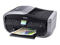 | Tipo de dispositivo | Fax / copiadora / impresora / escáner | Tipo de copiadora | Digital | Tipo de fax | Papel normal | Tecnología de impresión | Chorro de tinta - color - foto | Anchura | 50.7 cm | Profundidad | 48.2 cm | Altura | 25.8 cm | Peso | 13.9 kg | | Memoria flash soportada | Memory Stick, CompactFlash, SD Memory Card, MultiMediaCard, Memory Stick PRO, IBM Microdrive | | Velocidad de copia máxima | Hasta 31 ppm (mono) / hasta 24 ppm (color) | Ampliación máxima del documento | 400% | Reducción máxima del documento | 25% | Nº máximo de copias | 99 | Dúplex automático | Sí | Funciones de copia | 2 en 1, BorderFree, 4 en 1 | | Tecnología de inyección de tinta | Canon FINE (Full-lithography inkjet Nozzle Engineering) | Resolución máxima de impresión | 9600 x 2400 ppp (color) | Velocidad máxima de impresión | Hasta 31 ppm (mono) / hasta 24 ppm (color) | Color | 5 tintas | Tamaño mínimo de gota de tinta | 1 pl | | Elemento de escaneado | CIS | Resolución óptica | 9.600 x 4.800 ppp | Resolución interpolada | 19.200 x 19.200 ppp | Profundidad de escala de grises | 16 bit | Profundidad de color | 24 bit | Profundidad de color (interna) | 48 bit | | Compatibilidad | Super G3 | Velocidad máxima de transmisión | 33.6 Kbps | Sistema de compresión de datos | MH, MR, MMR, JPEG | Capacidad total de memoria | Hasta 250 páginas | Características del aparato de fax | | | Marcación con un solo botón | 8 estación(es) | Marcado rápido | 100 estación(es) | Tratamiento de documentos y medios | | | Tamaño máximo del original | Legal (216 x 356 mm) | Tipo de original | Hojas | Capacidad del alimentador de documentos | 35 hojas | Tamaño máximo de la copia | Legal (216 x 356 mm) | Peso mínimo de la copia | 64 g/m2 | Peso máximo de la copia | 273 g/m2 | Tipo de papel admitido | Sobres, papel normal, tarjetas, etiquetas, papel fotográfico brillante , disco CD/DVD imprimible | Capacidad estándar de papel | 300 hojas | Detalles de tratamiento de documentos y medios | ADF - 35 hojas ¦ Bandeja de entrada - 150 hojas ¦ Cassette de papel - 150 hojas ¦ Bandeja para CD/DVD | Detalles de velocidad | Copia : hasta 31 ppm - B/W ¦ Copia : hasta 24 ppm - color ¦ Impresión : hasta 31 ppm - B/N rápido ¦ Impresión : hasta 24 ppm - impresión en color calidad rápida ¦ Impresión : hasta 14.9 ppm - B/W ¦ Impresión : hasta 11.7 ppm - color | | Disponibilidad de la conexión del PC | Sí | Conexión PC | Hi-Speed USB, Ethernet 10 Base-T/100 Base-TX | Soporte del sistema operativo | MS Windows XP, MS Windows 2000, MS Windows Vista, Apple MacOS X 10.3.9 ó posterior | Software incluido | Controladores y utilidades, Presto! PageManager, ScanSoft OmniPage SE, Canon Easy CD LabelPrint, Canon Easy-PhotoPrint EX, Canon MP Navigator EX | | Voltaje requerido | CA 110/230 V ( 50/60Hz ) | Consumo eléctrico en funcionamiento | 21 vatios | Consumo eléctrico en modo de espera | 5.5 vatios | Consumo eléctrico en reposo | 1.4 vatios | | Especificaciones de impresión directa | PictBridge, Canon Direct Print | Consumibles incluidos | 1 x depósito de tinta ( negro pigmentado ) - hasta 505 páginas - Canon PGI-5BK ¦ 1 x depósito de tinta ( cián ) - hasta 890 páginas - Canon CLI-8C ¦ 1 x depósito de tinta ( magenta ) - hasta 665 páginas - Canon CLI-8M ¦ 1 x depósito de tinta ( amarillo ) - hasta 710 páginas - Canon CLI-8Y | Estándares de compatibilidad | EPA Energy Star | | Emisión de sonido | 37.5 dBA (operativo) | Temperatura mínima de funcionamiento | 5 °C | Temperatura máxima de funcionamiento | 35 °C | Ámbito de humedad de funcionamiento | 10 - 90% | | | |