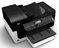 Características técnicas | Velocidad de borrador hasta 32 ppm en negro y 31 ppm en color. | Red inalámbrica 802.11g y Ethernet integradas para la conexión en red inalámbrica y con cable de hasta 5 estaciones de trabajo. | Alimentador automático de documentos de 35 hojas; impresión auto dos caras. | Escanear a PC, escanear a tarjeta de memoria (hasta 600 ppp), fax a PC, almacenamiento de faxes recibidos con alimentación desconectada. | Velocidades equivalentes a impresoras láser, hasta 7 ppm en negro y 7 ppm en color. | Dispositivo de bajo consumo de energía, homologado ENERGY STAR®. | Tintas HP Officejet individuales; opcionales estándar/XL negro y XL color. |