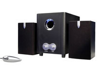 | THRUSTMASTER GU 2.1 SOUND SYSTEM (4060044) | |  Características técnicas | | Referencia | 2.1 Sound System | | Control de volumen | Rotary | Source data-sheet | ICEcat.biz | | Canales de audio | 2.1 | Optimización de bajos | Sí | | Color de producto | Negro | | Tipo | Altavoces de pie | Potencia de satélite, RMS | 5 W | Número de satélites | 2 | | Subwoofer RMS power | 10 W | | | |