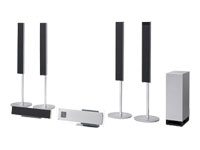 | Tipo de producto | Sistema de cine en casa | Dimensiones (AnchoxProfundidadxAltura) / Peso | Unidad principal : 57 cm x 5.6 cm x 16.8 cm / 4.2 kg ¦ Sistema de altavoces : altavoz del canal derecho/izquierdo : 10.5 cm x 3.5 cm x 70.5 cm / 2.1 kg ¦ Sistema de altavoces : altavoz del canal posterior derecho/izquierdo : 10.5 cm x 3.5 cm x 70.5 cm / 2 kg ¦ Sistema de altavoces : altavoz del canal central : 54.5 cm x 3.5 cm x 10.5 cm / 1.9 kg ¦ Sistema de altavoces : subwoofer activo : 18.8 cm x 31.8 cm x 57.3 cm / 14.5 kg | | Componentes | Sistema de altavoces, SACD / reproductor de DVD / receptor AV | Modo de salida del sonido | Sonido envolvente | Decodificadores incorporados | Dolby Pro Logic II, Dolby Digital, Decodificador DTSDTS | Efectos de sonido envolvente | Digital Cinema Sound EX | Efectos de sonido | Intensificación de graves | Procesador de sonido digital (PSD) | Sí | Funciones predeterminadas del PSD | Estadio, Virtual Multi Dimensión, Cinema Studio Ex. A, Cinema Studio Ex. B, Cinema Studio Ex. C, todos los canales estéreo, Concierto en directo | Clase de sistema envolvente | 5.1 canales | Total / Potencia de salida | 780 vatios | Detalles de salida del amplificador | 100 vatios - 2 canal/es ( frontal ) ¦ 100 vatios - 1 canal/es ( central ) ¦ 100 vatios - 2 canal/es ( posterior ) ¦ 280 vatios - 1 canal/es ( subwoofer ) | Reloj incorporado | Temporizador de apagado automático | Temporizador | Desconexión | Características adicionales | Funcionamiento del sensor táctil, reflejo de graves, blindaje magnético, calibración automática de sonido, Digital Infrared Audio Transmission (DIAT) | | Altavoz/altavoces | 2 x altavoz del canal derecho/izquierdo - 2 vías - externo - 100 vatios - 4 Ohm - cableado ¦ 1 x altavoz del canal central - 2 vías - externo - 100 vatios - 3.5 Ohm - cableado ¦ 2 x altavoz del canal posterior derecho/izquierdo - 2 vías - externo - 100 vatios - 4 Ohm - inalámbrico ¦ 1 x subwoofer activo - incorporado - 280 vatios - cableado | Detalles del controlador | Altavoz del canal derecho/izquierdo : 1 x controlador del woofer - 70 x 120mm ¦ Altavoz del canal derecho/izquierdo : 1 x controlador de tweeter - 25mm ¦ Altavoz del canal posterior derecho/izquierdo : 1 x controlador del woofer - 70 x 120mm ¦ Altavoz del canal posterior derecho/izquierdo : 1 x controlador de tweeter - 25mm ¦ Altavoz del canal central : 1 x controlador del woofer - 70 x 120mm ¦ Altavoz del canal central : 1 x controlador de tweeter - 25mm ¦ Subwoofer activo : controlador de subwoofer - 150mm | | Tipo | Sintonizador de radio - AM/FM - sintonizador digital de radio | Nº de emisoras presintonizadas | 30 emisoras presintonizadas | Cant. de estaciones de AM preestablecidas | 10 emisoras presintonizadas | Cant. de estaciones de FM preestablecidas | 20 emisoras presintonizadas | Factor de forma de la antena | Antena de cuadro para AM / antena de hilos para FM | | Tipo | Lector de DVD | Formato soporte | CD-R, CD-RW, SACD, SVCD, DVD-R, DVD+RW, DVD-RW, DVD+R, DVD, CD, CD de vídeo, DVD+R DL | Modos de repetición de DVD | Todo, título, capítulo | Modos de reproducción de CD | Reproducción de programa, reproducción aleatoria, repetición de todas las pistas, repetición de una pista | Reproducción de MP3 | Sí | Estándares de audio digital soportados | MP3 | Estándares de vídeo digital soportados | DivX | Características | Control paterno, capaz de mostrar Texto del DVD, capaz de mostrar Texto de CD, exploración progresiva, capaz de mostrar texto de SACD, reproducción de fotos JPEG, protector de pantalla | | Tipo | Mando a distancia - rayos infrarrojos | | Tipo de conector | HDMI ¦ Salida de vídeo componente | | Accesorios incluidos | Antena de AM, antena de FM, receptor IR, transmisor por infrarrojos, micrófono de calibración automática | Cables incluidos | Kit de cable para altavoces ¦ Cable de vídeo | | Dispositivo de alimentación | Adaptador de corriente - externa | | | |