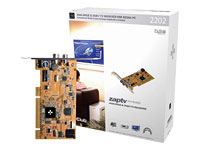 | CLUB3D ZAP TV-TUNER TV2202 PCI DIGITAL & ANALOG POWERCINEMA 4 (ZAP-TV2202) | |  | |  | Descripción La Zap-TV2202 es una solución híbrida de TV con una capturadora DVB-T y también una capturadora análoga, de esta manera puedes disfrutar del TV tango en señales digitales y análogas al mismo tiempo, haciendo de esta una solución fácil para el futuro. La Zap-TV2202 es la solución ideal para tu entretenimiento digital. Grabar por DVD y hacer de tu PC una grabadora digital es una realidad. | Características técnicas | | Referencia | Club 3D ZAP-TV2202 - Adaptador de receptor DVB-T / sintonizador de TV analógico / entrada de vídeo - PCI perfil bajo - NTSC, SECAM, PAL | Descripción del producto | Club 3D ZAP-TV2202 - adaptador de receptor DVB-T / sintonizador de TV analógico / entrada de vídeo - PCI perfil bajo | Tipo de dispositivo | Adaptador de receptor DVB-T / sintonizador de TV analógico / entrada de vídeo - tarjeta de inserción - perfil bajo | Compatibilidad | Compatible con MS Windows XP Media Center | Tipo de interfaz | PCI | Entrada de vídeo | Sintonizador TV - entrada S-Video, entrada de vídeo compuesto - tarjeta de inserción | Formato vídeo analógico | NTSC, SECAM, PAL | Señal vídeo analógica | S-Video, vídeo compuesto | Formato vídeo digital | MPEG-1, MPEG-2, DVB | Resolución toma vídeo digital | 352 x 288, 720 x 576, 480 x 576, 640 x 576 | Soporte de entrada audio | Estándar | Modo de entrada del sonido | Estéreo | Cables incluidos | 1 x cable de audio - externo ¦ 1 x adaptador de S-Video - compuesto - externo | Sistema operativo requerido | Microsoft Windows XP Media Center Edition | |