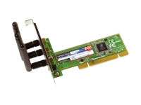 | Tipo de dispositivo | Adaptador de red | Factor de forma | Tarjeta de inserción | Tipo de interfaz (bus) | PCI | | Tecnología de conectividad | Inalámbrico | Protocolo de interconexión de datos | IEEE 802.11b, IEEE 802.11g | Características | TecnologÃa MIMO, Ad-Hoc Mode | Cumplimiento de normas | IEEE 802.11b, IEEE 802.11g, IEEE 802.1x | | Antena | Externa desmontable | | Interfaces | 1 x red - Radio-Ethernet | Ranuras compatibles | 1 x PCI | | Algoritmo de cifrado | WEP de 128 bits, ncriptación de 64 bits WEP, WPA, WPA-PSK | Software / Requisitos del sistema | | | Sistema operativo requerido | Microsoft Windows 2000 / XP | | Servicio y mantenimiento | 2 años de garantía | Detalles de Servicio y Mantenimiento | Garantía limitada - 2 años | | | |