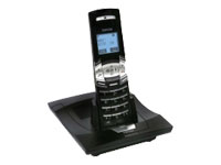 | Tipo de producto | Teléfono inalámbrico con identificación del abonado que llama | Características del teléfono | | | Estándar para teléfonos inalámbricos | DECTGAP | Cantidad máxima de auriculares soportada | 4 | Configuración para múltiples microteléfonos | Transferencia de la Agenda telefónica | Cant. máx. de unidades base soportadas | 4 | Distancia máxima de funcionamiento del auricular | 50 m | Distancia máxima de funcionamiento del auricular (exteriores) | 300 m | Tipo de mecanismo de marcación | Teclado | Ubicación del mecanismo de marcación | Auricular | Modos de marcación | Pulso, tono | Capacidad de llamadas en conferencia | Sí | Interfono | Sí | Teléfono con altavoz | Sí | Identificación de llamadas | Sí | Capacidad de correo de voz | Sí | Transferencia de llamada | Sí | Operación del menú | Sí | Botones de funciones | Botón del altavoz del teléfono, botón de intercomunicación, botón de flash, botón del silenciador del auricular, botón de remarcación | Control de volumen | Sí | Control del timbre | Sí | Timbre polifónico | Sí | Posicionador del microteléfono | Sí | Indicadores | Indicador de carga/en uso | Funciones adicionales | Reloj incorporado, Alarma | Características adicionales | Función automática de conversación, bloqueo del teclado, código NIP | | Capacidad de la guía de teléfonos | 200 nombres y números | Memoria de llamadas realizadas | 10 | Capacidad de registro de llamadas | 30 números | | Tipo | Pantalla de cristal líquido - monocromo | Ubicación de la pantalla | Auricular | Información de la pantalla | Estado de la batería, estado del mensaje, modo de alarma, manos libres, bloqueo de microteléfono | Características | Alumbrado de fondo | | Antena | Integrado | Accesorios incluidos | Clip para cinturón | | Tipo | Adaptador de corriente - externo | | Batería | 2 x baterías - tipo AAA | Capacidad | 700 mAh | Tecnología | Recargable - NiMH | Tiempo de conversación | Hasta 660 minutos | Tiempo en espera | Hasta 110 horas | | | |