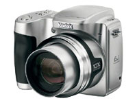 | Tipo de producto | Cámara digital | Anchura | 9.8 cm | Profundidad | 7.3 cm | Altura | 7.8 cm | Peso | 287 g | Características principales | | | Resolución | 6.1 Megapíxel | Colores admitidos | Color | Tipo sensor óptico | CCD | Total de píxeles | 6.360.000 píxeles | Resolución efectiva del sensor | 6.100.000 píxeles | Tamaño del sensor óptico | 1/2.5" | Sensibilidad a la luz | ISO 100, ISO 800, ISO 400, ISO 200, ISO 80, ISO automática (80-160) | Zoom digital | 5 x | Modos de toma de fotografías | Modo de cuadro de película | Programas de toma de fotografías | Horizontal, modo nocturno, texto, acercamiento del primer plano, museo, fiesta/interiores, luz posterior, retrato nocturno, autorretrato, Niños, fuegos artificiales, paisaje nocturno, flor, modo de deportes, playa, Documento, toma solariega, nieve | Efectos especiales | Blanco y negro, Sepia | Velocidad máxima del obturador | 1/1700 seg | Velocidad mínima del disparador | 8 seg | Medición de exposición | Multisegmento, compensado en el centro, punto | Modos de exposición | Programa, automático, manual, prioridad de abertura, prioridad de velocidad | Compensación de exposición | ±2 rango de EV, en pasos EV de 1/3 | Compensación de blanco | Automático, preajustes | Preajustes de compensación de blanco | Fluorescente, luz de tungsteno, luz de día, sombra | Formato vídeo digital | QuickTime (MPEG-4) | Formato de imágenes fijas | JPEG | Velocidad de toma continua | 2 cuadros por segundo, 2.5 cuadros por segundo | Captura de vídeo | QuickTime (MPEG-4) - 640 x 480 - 11 tramas por segundo - 107 segundos - con 32MB de memoria incorporada ¦ QuickTime (MPEG-4) - 320 x 240 - 20 tramas por segundo - 203 sec - con 32MB de memoria incorporada | | Memoria flash soportada | MultiMediaCard, SD Memory Card | Memoria integrada | 32 MB | Almacenamiento de imagen | JPEG 2832 x 2128 : 14 - con 32MB de memoria incorporada ¦ JPEG 2832 x 1888 : 16 - con 32MB de memoria incorporada ¦ JPEG 2304 x 1728 : 21 - con 32MB de memoria incorporada ¦ JPEG 2048 x 1536 : 27 - con 32MB de memoria incorporada ¦ JPEG 1496 x 1122 : 46 - con 32MB de memoria incorporada | | Flash de cámara | Flash emergente | Modos de flash | Modo suplente, modo automático, modo de flash apagado, reducción del efecto de ojos rojos | Reducción de ojos rojos | Sí | Rango efectivo del flash | 0.6 m - 4.9 m | Características | Iluminador de AF | | Tipo | Objetivo zoom - f/2.8-3.7 | Distancia focal equivalente a la de una cámara de 35mm | 38 - 380mm | Ajuste de foco | Automático, manual | Foco automático | Detección de contraste TTL | Distancia focal mínima | 60 cm | Rango de enfoque macro | 0.12-2.1m | Apertura de la lente | F/2.8-3.7 | Zoom óptico | 10 x | Ajuste de zoom | Unidad motorizada | Fabricante de la lente | Schneider | Características adicionales | | | Temporizador automático | Sí | Demora del temporizador automático | 10 segundos, 2 segundos | Características adicionales | Grabación audio, impresión directa, compatibilidad USB 2.0, ahorro automático de energía, impresión de fecha y hora, detección de orientación de la cámara, soporte de PictBridge, visualización de histograma, eliminación del efecto de ojos rojos en la cámara, recortar una imagen | | Tipo de visor | Electrónico | Soporte de colores del visor | Color | Tamaño en diagonal del visor | 0.2" | Resolución del visor | 201.000 píxeles | | Tipo | Display LCD - matriz activa TFT - 2" - color | Factor de forma de la pantalla | Incorporada | Formato de pantalla | 110.000 píxeles | | Tipo | Micrófono - incorporado | | Tipo de conector | 1 x vídeo compuesto/salida de audio ¦ 1 x USB ¦ 1 x estación de acoplamiento ¦ 1 x entrada de corriente continua | Ranura(s) de expansión | 1 x Tarjeta de memoria SD | | Software | Controladores y utilidades, Kodak EasyShare | Requisitos del sistema para conexión a PC | | | Soporte del sistema operativo | MS Windows XP, MS Windows 2000, MS Windows ME, MS Windows 98, MS Windows 98 SE, Apple Mac OS X 10.2.3 - 10.2.8, Apple MacOS X 10.3 ó posterior | Dispositivos periféricos | Puerto USB, Monitor SVGA, Unidad de CD-ROM | Detalles de los requisitos del sistema | Windows 98/98SE/2000/ME - 233 MHz - 64 MB - 200 MB ¦ Windows XP - 300 MHz - 128 MB - 200 MB ¦ MacOS X 10.x - PowerPC G3 - 200 MB - 200 MB | | Accesorios incluidos | Correa para estuche portátil, tapa para objetivo, adaptador de lente, módulo de inserción a la estación de acoplamiento | Cables incluidos | Cable USB ¦ Cable de audio/vídeo | | Batería soportada | AA, CR-V3 | Detalles de batería soportados | 1 x CR-V3 batería de litio ¦ 2 x AA | | Servicio y mantenimiento | 1 año de garantía | Detalles de Servicio y Mantenimiento | Garantía limitada - 1 año | | | |
