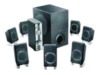 | Tipo de producto | Sistema de altavoces de cine en la casa multimedios para PC | | Componentes del sistema | 7 altavoces, unidad de procesamiento de señales, subwoofer | Tipo de altavoces | Activa | Potencia nominal de salida (Total) | 92 vatios | Potencia de salida (total) máxima (RMS) | 125 vatios | Ancho de banda de respuesta | 40 - 20000 Hz | Relación Señal a ruido | 80 dB | Amplificador de sonido | Integrado | Tecnología de conectividad | Cableado | Decodificadores incorporados | Dolby Pro Logic II, DTS Neo:6 | Rejillas desmontables | Sí | Detalles del sistema de altavoces | | | Altavoces incluidos | 1 x altavoz del canal central - 2 vías - 20 vatios - cableado ¦ 1 x subwoofer - 24 vatios - cableado ¦ 2 x altavoz del canal derecho/izquierdo - 2 vías - 8 vatios - cableado ¦ 4 x altavoz satélite - 8 vatios - cableado | | Cables incluidos | 3 x cable de altavoz - 2 m ¦ 2 x cable de altavoz - 5 m ¦ 2 x cable de altavoz - 7 m ¦ Cable de audio | Accesorios incluidos | Base para altavoz satélite | Control remoto | Mando a distancia - rayos infrarrojos | | Dispositivo de alimentación | Adaptador de corriente - externa | | | |