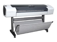 | Tipo de impresora | 44" impresora de gran formato - chorro de tinta - color | Anchura | 177 cm | Profundidad | 66.1 cm | Altura | 104.7 cm | Peso | 86 kg | Localización | Español / España | | Tecnología de inyección de tinta | HP Thermal Inkjet | Paleta de tinta admitida (colores) | 6 tintas - cián, magenta, amarillo, negro fotográfico, negro mate, gris | Configuración de boquilla | 6 x 1.056 boquillas | Tamaño mínimo de gota de tinta | 6 pl | Configuración de cartuchos de tinta | 6 depósitos de tinta individuales; 2 colores por cabezal de impresión | Tipo de tinta | HP Vivera Inks | Velocidad de impresión | Hasta 1.7 ppm - texto/gráficos en color, calidad borrador - A1 (594 x 841 mm) ¦ Hasta 41 m2/hora - impresión en color calidad rápida ¦ Hasta 2.8 m2/hora - impresión en color calidad óptima | Tecnología de conectividad | Cableado | Interfaz | USB, Ethernet 10Base-T/100Base-TX/1000Base-T | Resolución máxima (B/N) | 2400 ppp x 1200 ppp | Resolución máxima (color) | 2400 ppp x 1200 ppp | Simulación idioma | PCL 3, CALS G4, HP GL/2 | | RAM instalada (máx.) | 256 MB | | Disco duro | 40 GB | | Tipo de soporte | Papel cuché , papel cuché de gramaje extra , papel fotográfico semisatinado, papel de fotografía satinado, papel translúcido, papel pergamino, papel fotográfico mate, película de poliéster, papel bond, vinilo autoadhesivo, papel fotográfico satinado, papel retroiluminado | Tamaño mínimo de soporte (Personalizado) | 216 mm (Legal) | Tamaño máximo de soporte (personalizado) | 1118 mm x 91.4 m | Longitud máxima de impresión | 91 m | Peso del soporte | 60 g/m2 - 328 g/m2 | | Conexión de redes | Servidor de impresión | Protocolo de interconexión de datos | Ethernet, Fast Ethernet, Gigabit Ethernet | | Total ranuras de expansión (libres) | 1 ( 1 ) x EIO | Conexiones | 1 x red - Ethernet 10Base-T/100Base-TX/1000Base-T - RJ-45 ¦ 1 x Hi-Speed USB | | Accesorios incluidos | Base | Cables incluidos | 1 x cable USB | Consumibles incluidos | 1 x cartucho de tinta ( cián ) - 130 ml - HP 72 ¦ 1 x cartucho de tinta ( Photo Negro ) - 130 ml - HP 72 ¦ 1 x cartucho de tinta ( gris ) - 130 ml - HP 72 ¦ 1 x cartucho de tinta ( magenta ) - 130 ml - HP 72 ¦ 1 x cartucho de tinta ( amarillo ) - 130 ml - HP 72 ¦ 1 x cartucho de tinta ( negro mate ) - 130 ml - HP 72 ¦ 3 x cabeza de impresión - HP 72 | Cumplimiento de normas | Certificado FCC Clase B , CSA, BSMI, VCCI Class B ITE, GOST, DOC-B, EPA Energy Star, CCC, EMC, PSB, MOC, IRAM, RoHS, EN 60950-1, MIC Class A, ACA | | Dispositivo de alimentación | Fuente de alimentación - interna | Voltaje necesario | CA 120/230 V | Frecuencia requerida | 50/60 Hz | Consumo eléctrico en funcionamiento | 200 vatios | Consumo eléctrico en modo de espera / reposo | 27 vatios | Software / Requisitos del sistema | | | Software incluido | Controladores y utilidades | Sistema operativo requerido | Apple MacOS X 10.2, Microsoft Windows 2000 / XP, Apple MacOS X 10.3, Apple MacOS X 10.4 ó posterior | Detalles de los requisitos del sistema | MacOS X - PowerPC G4 - RAM 1 GB - HD 2 GB ¦ Windows 2000 - Pentium III - 733 MHz - RAM 512 MB - HD 2 GB ¦ Windows XP - Pentium 4 - 1 GHz - RAM 512 MB - HD 2 GB | | Servicio y mantenimiento | 1 año de garantía | Detalles de Servicio y Mantenimiento | Garantía limitada - piezas y mano de obra - 1 año | | Temperatura mínima de funcionamiento | 5 °C | Temperatura máxima de funcionamiento | 40 °C | Ámbito de humedad de funcionamiento | 20 - 80% | Emisión de sonido | 29 dBA (inactivo) / 44 dBA (operativo) | | | |