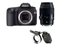 | CANON 30D EOS CIG KIT (1234B199AA) | |  | |  | Descripción Plasme su visión creativa con la EOS 30D. Velocidad y precisión en un robusto cuerpo de aleación de magnesio, con acceso a más de 60 objetivos EF y toda la gama de accesorios EOS para una creatividad ilimitada.Un sensor CMOS de 8,2 megapíxeles proporciona la sensibilidad necesaria para conseguir imágenes claras y detalladas con una excelente gradación de color. Al ser mayores los píxeles del sensor permiten conseguir una amplia gama dinámica y una reducción del ruido a sensibilidades ISO más altas. El sensor, de un tamaño de 22,5 x 15 mm, añade un incremento efectivo de 1,6x a la longitud focal de los objetivos EF, aumentando el alcance en el extremo tele.Iluminada mediante 6 LEDs, la luminosa pantalla de 2,5" y 230.000 píxeles se puede visualizar desde un ángulo de 85° en casi cualquier dirección.La función "Estilo de imagen" proporciona un sencillo control sobre los parámetros de procesado de la imagen. Cada estilo ofrece una respuesta de color diferente, de forma similar a cuando se emplean diferentes tipos de película para conseguir diferentes efectos. Mediante cada preajuste se pueden definir nitidez, contraste, tono y saturación de color.DIGIC II proporciona colores exactos y precisos. Rápido y eficiente, DIGIC II prolonga la vida de la batería y consigue que el tiempo de encendido sea de 0,15seg. | Características técnicas | | Referencia | Canon EOS 30D - Cámara digital - SLR - 8.2 Mpix - objetivo Canon EF de 100 mm - memoria soportada: CF, Microdrive | Descripción del producto | Canon EOS 30D - cámara digital | Tipo de producto | Cámara digital - SLR | Dimensiones (Ancho x Profundidad x Altura) | 14.4 cm x 7.3 cm x 10.6 cm | Peso | 0.7 kg | Memoria flash soportada | CompactFlash, Microdrive | Resolución del sensor | 8.2 Megapíxel | Apertura de la lente | F/2.8 | Ajuste de foco | Automático, manual | Distancia focal mínima | 31 cm | Distancia focal | 100 mm | Flash de cámara | Flash emergente | Nombre flash externo | Canon Macro Ring Lite MR-14EX | Reducción de ojos rojos | Sí | Tipo de micrófono | Ninguno/a | Visor | Óptico - pentaprisma fijo al nivel del ojo | Display | Display LCD - matriz activa TFT - 2.5" - color | Batería soportada | 1 x batería recargable de ion-litio - 1390 mAh ( Incluido ) | |