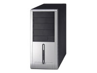 | Factor de forma | Torre | Tamaño máximo de placa base | ATX | Placas base soportadas | ATX | Cantidad de compartimentos internos | 4 | Cantidad de compartimentos frontales | 5 | Anchura | 19 cm | Profundidad | 47.4 cm | Altura | 43.1 cm | Peso | 7.6 kg | Ventiladores | Posterior : 1 x 9.2 cm - ( 1 instalado) ¦ Frontal : 1 x 8 cm - ( 0 instalado) | Propiedades de la caja del sistema | Anillas para candado, conducto del ventilador | | Total compartimentos de expansión (libres) | 4 ( 4 ) x accesible a la parte frontal - 5.25" x 1/2H ¦ 1 ( 1 ) x accesible a la parte frontal - 3.5" x 1/3H ¦ 4 ( 4 ) x interna - 3.5" x 1/3H | Total ranuras de expansión (libres) | 7 Ranura de expansión - de longitud larga | Interfaces | 2 x Hi-Speed USB - 4 PIN USB tipo A | | Cumplimiento de normas | CE, UL, TUV, FCC | | Dispositivo de alimentación | Fuente de alimentación | Cantidad instalada | 1 | Cantidad máxima soportada | 1 | Potencia suministrada | 350 vatios | | | |