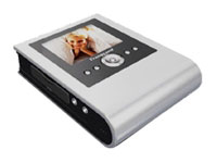 | Tipo de dispositivo | Reproductor AV digital | Características clave | Grabadora de voz, visor de fotografía digital, función HDD externo, lector de tarjeta de memoria | Dispositivos de control externos | Mando a distancia | Interfaces de PC | Hi-Speed USB | | Tipo de pantalla | LCD 2.5" - color | Factor de forma de la pantalla | Incorporada | Formato de pantalla | 294 x 288 | Estándares de TV soportados | NTSC, PAL | | Tarjetas de memoria flash soportadas | Tarjeta CompactFlash tipo I, Tarjeta CompactFlash tipo II, Palanca de memoria, Memory Stick PRO, Microdrive, MultiMediaCard, SD Memory Card, SmartMedia Card, Memory Stick Duo, Memory Stick PRO Duo, miniSD, RS-MMC | Capacidad de disco duro | 20 GB | Diseño de disco duro | 1.8" | | Formatos soportados de imágenes fijas | JPEG | | Formatos de audio soportados | MP3 | | Formatos de reproducción de vídeo | Motion JPEG | | Conexiones | Hi-Speed USB ¦ Salida de la línea de audio ¦ Salida de vídeo compuesto | | Tipo | Adaptador de corriente | | Pila recargable | Recargable | Tecnología | Litio | Detalles de la vida útil de las pilas | 4 hora(s) | | Accesorios incluidos | Auriculares estéreo, AV cable, cable USB, mando a distancia | | Servicio y mantenimiento | 2 años de garantía | Detalles de Servicio y Mantenimiento | Garantía limitada - 2 años | | | |