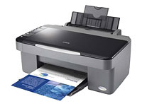 | Tipo de dispositivo | Copiadora / impresora / escáner | Tecnología de impresión | Chorro de tinta - color | Anchura | 43 cm | Profundidad | 34.5 cm | Altura | 17.2 cm | Peso | 5.7 kg | | Tecnología de inyección de tinta | Epson Micro Piezo | Configuración de boquilla | 90 boquillas (negras), 29 boquillas (por color) | Resolución máxima de impresión | Hasta 5.760 x 1.440 ppp (mono) / hasta 5.760 x 1.440 ppp (color) | Velocidad máxima de impresión | Hasta 23 ppm (mono) / hasta 12 ppm (color) | Configuración de cartuchos de tinta | 4 cartuchos (1 de cada: cian, magenta, amarillo, negro) | Paleta de tinta admitida (colores) | Cian, magenta, amarillo, negro | Color | 4 tintas | Tamaño mínimo de gota de tinta | 4 pl | Tipo de tinta | Tintas Epson DURABrite Ultra | | Elemento de escaneado | CIS / CCD | Resolución óptica | 600 x 1200 ppp | Tratamiento de documentos y medios | | | Tipo de original | Hojas | Tamaño máximo de la copia | Legal (216 x 356 mm) | Tipo de papel admitido | Papel normal, papel fotográfico brillante | Capacidad estándar de papel | 100 hojas | Detalles de tratamiento de documentos y medios | Bandeja de entrada - 100 hojas - Legal (216 x 356 mm) | Detalles de velocidad | Impresión : 94 segundos ( 10 x 15 cm (4"x6") ) - foto ¦ Impresión : hasta 23 ppm ( A4 ) - B/W ¦ Impresión : hasta 12 ppm ( A4 ) - color ¦ Copia : 5.3 segundos ( A4 ) - B/W ¦ Copia : 12.1 segundos ( A4 ) - color | | Disponibilidad de la conexión del PC | Sí | Conexión PC | USB | Soporte del sistema operativo | MS Windows XP, MS Windows 2000, MS Windows ME, MS Windows 98 SE, Apple MacOS X 10.2.8 ó posterior | | Voltaje requerido | CA 230 V ( 50/60Hz ) | Consumo eléctrico en funcionamiento | 10 vatios | Consumo eléctrico en reposo | 3 vatios | | Servicio y mantenimiento | 1 año de garantía | Detalles de Servicio y Mantenimiento | Garantía limitada - 1 año | | | |
