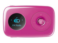 | Tipo de producto | Radio / reproductor digital | Tipo de reproductor digital | Basado en flash | Funciones de reproductor digital | Radio, grabadora de voz | Anchura | 5.6 cm | Profundidad | 1.3 cm | Altura | 3.5 cm | Peso | 21 g | Color incluido | Rosa | Interfaz admitida por el PC | USB | | Capacidad | 2 GB | Medios digitales de almacenamiento | Memoria flash - integrado | Modo de salida del sonido | Estéreo | Ecualizador | Sí | Reloj incorporado | Reloj digital, temporizador, cronómetro | Características | Grabación de voz, firmware actualizable, compatibilidad USB 2.0 | | Pantalla incorporada | OLED | Iluminación de la pantalla | Sí | Color de iluminación de la pantalla | Azul | Resolución | 64 x 64 | | Presintonías de fábrica del ecualizador | Rock, Jazz, Clásica | Reproductor digital (grabador) | | | Normas de audio digital admitidas | WAV, WMA, Audible, MP3, ADPCM, WMA protegido (DRM 9) | Velocidad de transferencia en bits admitida | 320 Kbps | Ancho de banda de respuesta | 20 - 20000 Hz | Relación señal a ruido | 90 dB | Distorsión armónica total | 0.1% | | Tipo | Sintonizador de radio - sintonizador digital de radio - FM | Nº de emisoras presintonizadas | 32 emisoras presintonizadas | Cant. de estaciones de FM preestablecidas | 32 emisoras presintonizadas | | Tipo de auriculares | Auriculares - biauricular - botón para el oído | Tecnología de conectividad | Cableado | Modo de salida del sonido | Estéreo | Ancho de banda de respuesta | 20 - 20000 Hz | Sensibilidad | 109 dB | Impedancia | 32 Ohm | | Tipo | Micrófono - incorporado | Modo de operación del micrófono | Mono | | Tipo de conector | 1 x USB ( mini USB tipo B ) ¦ 1 x auriculares ( miniteléfono estéreo 3.5 mm ) | | Cables incluidos | 1 x cable USB | Software | Controladores y utilidades | | Batería | Reproductor - recargable - litio-polímero | Tipo de compartimiento de baterías | Integrado | Cant. incluida | 1 | Duración (hasta) | 9.5 hora(s) | | Sistema operativo requerido | Microsoft Windows XP 64-bit Edition, Microsoft Windows XP SP1 ó posterior, Microsoft Windows Vista | Dispositivos periféricas / interfaz | Puerto USB | | Servicio y mantenimiento | 1 año de garantía | Detalles de Servicio y Mantenimiento | Garantía limitada - 1 año | | | |
