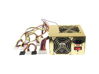 | Fuente de alimentación Sweex 350W dorada (BA000040) | |  | |  | Descripción Esta alimentación de color oro es especialmente apta para sistemas de ordenador AMD y P4 y puede ser instalada en prácticamente cualquier caja. El elemento refrigerador se instala por encima de las piezas eléctricas, lo cual tiene un efecto refrigerador muy efectivo. La alimentación dispone también de dos conexiones de corriente seriales ATA, que pueden ser instaladas en su disco duro serial ATA. | Características técnicas | | Referencia | SWEEX PSU Gold - Fuente de alimentación ( interna ) - ATX - CA 110/220 V - 350 vatios | Descripción del producto | SWEEX PSU Gold fuente de alimentación - 350 vatios | Tipo de dispositivo | Fuente de alimentación - interna | Conformidad con las especificaciones | ATX | Voltaje de entrada | CA 110/220 V | Voltaje de salida | +3.3, ±5, ±12 V | Potencia suministrada | 350 vatios | Conector/es de salida | Potencia, alimentación Serie ATA de 15 patillas | |