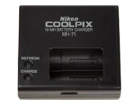 | CARGADOR BATERÍA NIKON MH-71 (999580) | |  | |  | Descripción La descripción de marketing no está disponible. | Características técnicas | | Referencia | Nikon MH 71 - Cargador de batería | Descripción del producto | Nikon MH 71 - cargador de batería | Tipo de producto | Cargador de batería | Dimensiones (Ancho x Profundidad x Altura) | 7 cm x 7.9 cm x 3 cm | Peso | 110 g | Voltaje necesario | CA 100-240 V ( 50/60 Hz ) | Voltaje proporcionado | 1.2 V | |