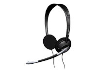 | Tipo de producto | Casco con auriculares | Uso recomendado | Multimedios de PC, teléfono IP para conferencia | Características | Circuito de cancelación de ruido | | Tipo de auriculares | Auricular - biauricular | Factor de forma de los auriculares | Semiabierto | Tecnología de conectividad | Cableado | Modo de salida del sonido | Estéreo | Ancho de banda de respuesta | 40 - 18000 Hz | Sensibilidad | 109 dB | Impedancia | 32 Ohm | | Tipo | - boom | Modo de operación del micrófono | Mono | Sensibilidad | -38 dBV/Pascal | Impedancia | 2 kOhm | Ancho de banda de respuesta | 80 - 15000 Hz | Detalles de la entrada de audio | Unidireccional - 80 - 15000 Hz | | Tipo de conector | 1 x micrófono ( miniteléfono 3.5 mm ) ¦ 1 x auriculares ( miniteléfono 3.5 mm ) | | Cables incluidos | Cable para auriculares - integrado - 3 m | | | |