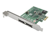 | Tipo de dispositivo | Controlador de almacenamiento (RAID) - tarjeta de inserción - perfil bajo | Tipo de interfaz | PCI Express x1 | Profundidad | 8.5 cm | Altura | 6.4 cm | Controlador de almacenamiento | | | Tipo de controlador interfaz | Serial ATA-300 | Velocidad de transferencia de datos | 300 MBps | Dispositivos soportados | Disco duro, pila de discos (RAID) | N° canales | 2 | Nº máximo de dispositivos almacenamiento | 2 | Nivel RAID | RAID 0, RAID 1, JBOD | | Interfaces | 2 x almacenamiento - eSATA-300 - Serial ATA externo de 7 espigas ( externo ) | Ranuras compatibles | 1 x PCI Express x1 - bajo perfil | | Cumplimiento de normas | RoHS | | Servicio y mantenimiento | 3 años de garantía | Detalles de Servicio y Mantenimiento | Garantía limitada - 3 años | | Temperatura mínima de funcionamiento | 0 °C | Temperatura máxima de funcionamiento | 55 °C | | | |