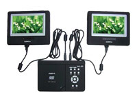 | Tipo de producto | Lector de DVD | Factor de forma | Portátil | Color incluido | Negro | Colores disponibles del cuerpo | Negro, plateado | | Tipo de medios | CD-R, CD-RW, DVD-R, DVD+RW, DVD-RW, DVD+R, Kodak Picture CD, DVD, CD | Formato soporte | SECAM, PAL | Convertidor digital/analógico de vídeo | 10bit / 27MHz | Convertidor digital/analógico de audio | 24bit / 96kHz | Decodificadores de audio incorporados | Dolby Digital | Estándares de vídeo digital soportados | MPEG-4 | Estándares de audio digital soportados | MP3 | | Tipo de pantalla | Display LCD - matriz activa TFT - 7" - color | Coeficiente del aspecto de imagen | 16:9 | | Compatible con MP3 | Sí | Características | Reproducción de fotos JPEG | | Modo de salida del sonido | Estéreo | Formato de audio digital | Salida Dolby Digital, salida DTS digital | | Tipo | Mando a distancia | Tecnología | Rayos infrarrojos | | Tipo de conector | 1 x salida S-Video ( 4 PIN mini-DIN ) ¦ 1 x salida de vídeo compuesto ( RCA fono ) ¦ 1 x entrada de vídeo compuesto ( RCA fono ) ¦ 1 x entrada de la línea de audio ( RCA fono x 2 ) ¦ 1 x salida de audio digital (óptico) ( TOSLINK ) ¦ 1 x auriculares ( miniteléfono estéreo 3.5 mm ) | | Accesorios incluidos | Adaptador de corriente para automóvil, auriculares, gancho para cinturón | | Dispositivo de alimentación | Adaptador de corriente - externa | | | |