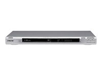 | Tipo de producto | Lector de DVD | Factor de forma | Sobremesa | Anchura | 43 cm | Profundidad | 20.8 cm | Altura | 4.3 cm | Peso | 1.75 kg | Color incluido | Plata | | Tipo de medios | CD-R, CD-RW, SVCD, DVD-R, DVD+RW, DVD-RW, DVD+R, DVD, CD, CD de vídeo, DVD+R DL | Formato soporte | NTSC, PAL | Convertidor digital/analógico de vídeo | 12bit / 108MHz | Convertidor digital/analógico de audio | 24bit / 192kHz | Tipo de carga de medios | Bandeja | Modos de reproducción de DVD | Reproducción de programa, reproducción aleatoria | Modos de repetición de DVD | Repetir A-B, todo | Modos de reproducción de CD | Reproducción de programa, repetición de A-B, reanudar reproducción, reproducción aleatoria, repetición de todas las pistas, repetición de una pista | Estándares de vídeo digital soportados | DivX | Estándares de audio digital soportados | MP3 | | Control paterno | Sí | Protector de pantalla del televisor | Sí | Compatible con MP3 | Sí | Características | Ecualizador de vídeo, control paterno, vista preliminar por capítulo, capaz de mostrar Texto del DVD, control de nitidez, capaz de mostrar Texto de CD, reproducción rápida/lenta, con capacidad para DivX, reproducción de fotos JPEG, protector de pantalla | | Modo de salida del sonido | Estéreo | Efectos de sonido envolvente | Sonido envolvente virtual para TV | Ancho de banda de respuesta | 2 - 44000 Hz | Gama dinámica | 103 dB | Formato de audio digital | Salida DTS digital | Velocidad de muestreo de salida digital | 48KHz, 96KHz | Relación señal/ruido | 115 dB | Distorsión armónica total | 0.003% | Características | Pantalla fluorescente | | Tipo | Mando a distancia | Tecnología | Rayos infrarrojos | Características | Compatibilidad con múltiples marcas | | Tipo de conector | 1 x salida de vídeo compuesto ( RCA fono ) - posterior ¦ 1 x SCART ( 21 PIN SCART ) - posterior ¦ 1 x salida de la línea de audio ( RCA fono x 2 ) - posterior ¦ 1 x salida de audio digital (coaxial) ( RCA fono ) - posterior | | Dispositivo de alimentación | Fuente de alimentación - interna | Voltaje necesario | CA 120/230 V ( 50/60 Hz ) | Consumo eléctrico en funcionamiento | 9 vatios | | | |