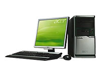 | Tipo | Ordenador personal | Factor de forma del producto | Mini torre | Anchura | 18.3 cm | Profundidad | 45.5 cm | Altura | 37 cm | Localización | España | | Tipo | Intel Pentium Dual Core E2140 / 1.6 GHz | Cantidad instalada | 1 | Cantidad máxima soportada | 1 | | Tipo | L2 | Tamaño instalado | 1 MB | Caché por procesador | 1 MB | | Tipo conjunto de chips | Intel 946GZ Express | Velocidad bus de datos | 800 MHz | | Tamaño instalado | 1 GB / 2 GB (máx.) | Tecnología | DDR II SDRAM | Factor de forma | DIMM de 240 espigas | Características | Dos canales DDR | Controlador de almacenamiento | | | Tipo | 1 x Serial ATA | Tipo de controlador interfaz | Serial ATA-300 | | Disco duro | 1 x 160 GB - estándar - Serial ATA-300 | | Tipo | Grabadora de DVD | | Tipo de monitor | Ninguno | | Tipo | Integrado | Procesador gráfico/ fabricante | Intel GMA 3000 | Memoria de vídeo | Dynamic Video Memory Technology 4.0 | | Tipo | Tarjeta de sonido - integrado | Modo de salida del sonido | Sonido envolvente de 7.1 canales | Cumplimiento de normas | High Definition Audio | | Tipo | Ratón, teclado | | Interfaz | PS/2 | | Tecnología | Óptico | Interfaz | PS/2 | | Conexión de redes | Adaptador de red - integrado | Protocolo de interconexión de datos | Ethernet, Fast Ethernet, Gigabit Ethernet | | Total compartimentos de expansión (libres) | 2 ( 1 ) x accesible a la parte frontal - 5.25" x 1/2H ¦ 2 ( 2 ) x accesible a la parte frontal - 3.5" x 1/3H ¦ 4 ( 3 ) x interna - 3.5" x 1/3H | Total ranuras de expansión (libres) | 2 memoria - DIMM de 240 espigas ¦ 1 ( 0 ) x procesador ¦ 2 ( 2 ) x PCI ¦ 1 ( 1 ) x PCI Express x16 ¦ 1 ( 1 ) x PCI Express x1 | Interfaces | 1 x paralelo - IEEE 1284 (EPP/ECP) - D-Sub de 25 espigas (DB-25) ¦ 1 x serial - RS-232 - D-Sub de 9 espigas (DB-9) ¦ 1 x teclado - genérico - mini-DIN de 6 espigas (estilo PS/2) ¦ 1 x ratón - genérico - mini-DIN de 6 espigas (estilo PS/2) ¦ 8 x Hi-Speed USB - 4 PIN USB tipo A ( 4 frontales ) ¦ 1 x pantalla / vídeo - VGA - HD D-Sub de 15 espigas (HD-15) ¦ 1 x red - Ethernet 10Base-T/100Base-TX/1000Base-TX - RJ-45 ¦ 6 x audio - salida | | Cumplimiento de normas | CE, C-Tick, BSMI, EPA Energy Star, NEMKO, CB, CCC, FCC, ETL | | Tipo de dispositivo | Fuente de alimentación | Potencia suministrada | 250 vatios | Sistemas operativos / Software | | | OS prorporcionado | Linux | Software | Norton Antivirus, Cyberlink PowerDVD , NTI CD-Maker Gold Edition, Adobe Reader, Acer Empowering Technology, Acer LANScope Lite | | Servicio y mantenimiento | 1 año de garantía | Detalles de Servicio y Mantenimiento | Garantía limitada - 1 año - introducir | | | |